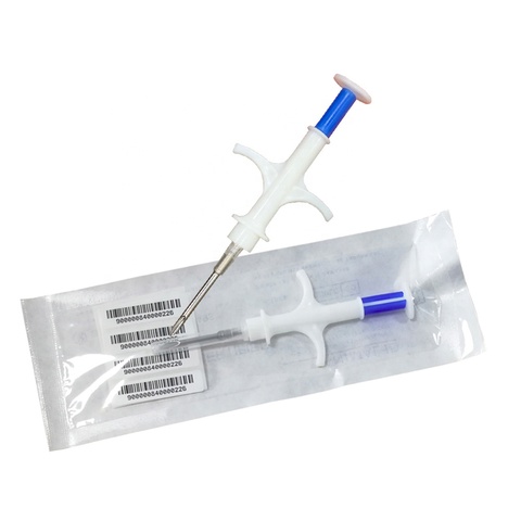 رقاقة ox kHz FDX EM4305 رقاقة زرع Para Pet RFID علامات التعريف مع حقنة حقن للكلاب والقطط والأسماك والحيوانات الأليفة